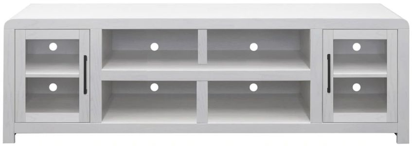 The Haven 82" TV stand combines modern casual design with curved edges and two glass doors. It offers ample storage and a warm bourbon finish, perfect for stylish entertainment spaces.Read More